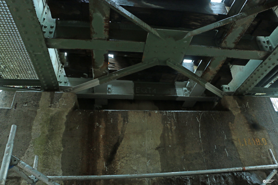 unter der Brücke :Abgebrochene(r) "Instandsetzung"/Schutzanstrich