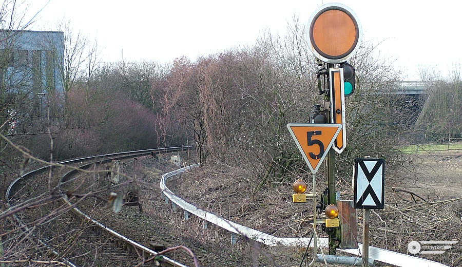 | Rechts die vom Abzw. Tiefenbroich gestellten Signale B und C (Angertalbahn) Aufnahmen vom 2.Juni 2006 |