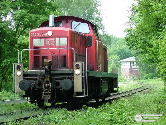 | Die Übergaben von/nach Rohdenhaus bzw. zu einem Schrotthandel in Wülfrath werden von Lokomotiven der Baureihe 294 gefahren.Link zu den "Planzeiten" der Baureihe 294 im Angertal. Aufnahme 294 168 am 13. Januar 2006 gegen 13:05 Uhr |