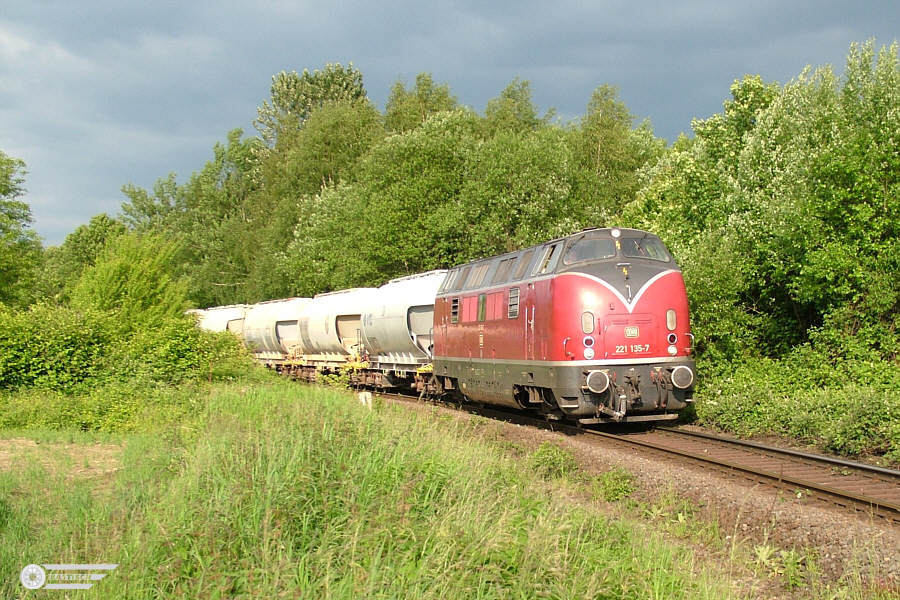 Die Kalksteinmehlzüge der Neusser Eisenbahn werden Ende November 2006 von Lok 9 der Neusser Eisenbahn gefahren. Ob 221 135 wieder in den Einsatz zurückkehrt ist mir leider nicht bekannt.