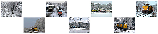 | 02.01.2010 Auf der Angertalbahn waren u.a. unterwegs: Einfahrt Ratingen: 11:15 Uhr EH 548 Ausfahrt Ratingen: 16:02 Uhr EH 549 16:20 Uhr Lok 6469 und Lok 6463 mit sechs Talns 971 |