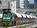 | Die Neusser Eisenbahn fährt Kalksteinmehlzüge zu den RWE Rheinbraun Kraftwerken im rheinischen Braunkohlenrevier |