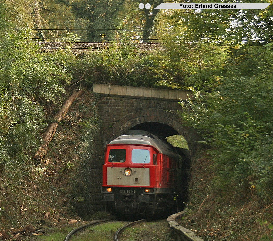 Ratingen 13:00 Uhr Ausfahrt eines Zuges aus dem Angertal (dürfte 232 117 gewesen sein) |