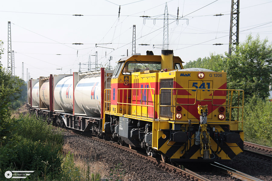 | 01.09.2010-18:20Uhr EH 541 mit beladenen Containertragwagen durch Lintorf |