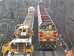 19. auf den 20.11.2011 Ratingen Arbeiten am Oberbau auf einer Länge von 1.020 Metern. Am parallel zur Hauptstrecke verlaufenden Gleis waren Absperrungen aufgebaut. Bis km 1,7 war Baustelllenbelauchtung aufgebaut. Woher allerdings die am Bahnübergang Junkernbuschweg abgelegten Alt-(Beton) Schwellen stammen - ist mir nicht bekannt, da eigentlich nur Stahlschwellen verbaut sind. Im weiteren Verlauf der Arbeiten wurden die Schienen ausgetauscht. |