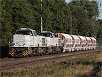 | Die Neusser Eisenbahn fährt Kalksteinmehlzüge zu den RWE Rheinbraun Kraftwerken im rheinischen Braunkohlenrevier |