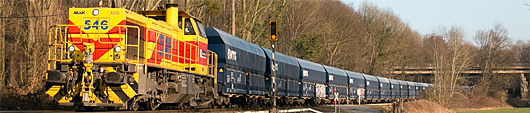 | RheinCargo fährt Kalksteinmehlzüge zu den RWE Rheinbraun Kraftwerken im rheinischen Braunkohlenrevier |