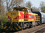 | [1] Kilometrierung Strecke 2404 (Ratingen West - Wülfrath) [2] Kilometrierung Strecke 2405 (Abzw.Tiefenbroich - Abzw.Anger) [3] Lok 542 trugt als letzte Lok der Reihe 541 bis 549 noch das EH - Logo bis kurz nach dem 31.01.2016 (Sichtung 12.03.2016 >ThyssenKrupp) |