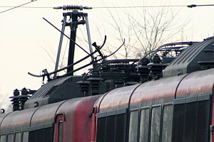 Am 8.Januar 2008 kam es in zu einem Bügelabriss an Lok 151 003 (führende Lok einer südwärtsfahrenden Doppeltraktion -zweite Lok war 151 008) Die Lokomotiven kamen zwischen den Bahnübergängen Tiefenbroicher Strasse und Kalkumer Strasse zum stehen. Die Waggons versperrten stundenlang den Bahnübergang Kalkumer Strasse (s.links). >>KLICK zu grösseren und weiteren Aufnahmen von Stefan Weiskopff | ![]() |