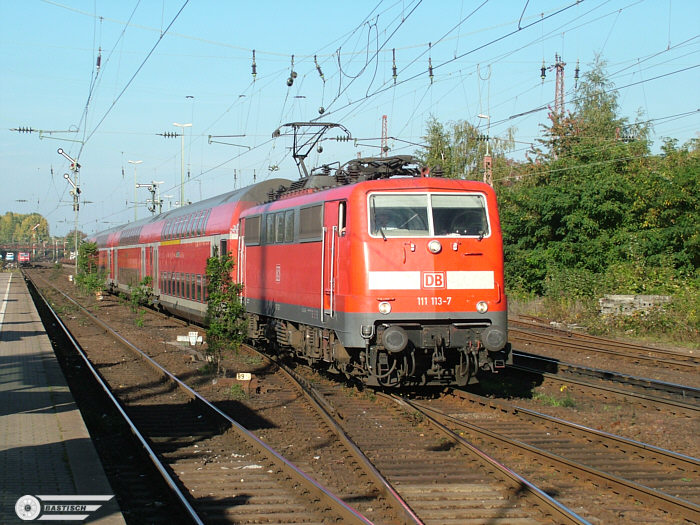 111 113 am 13.10.2007 Durchfahrt Düsseldorf-Rath RE 10322 Durchfahrt 16:12 Uhr Plan Duisburg Hbf ab 15:52 Uhr Düsseldorf Hbf an 16:10 Uhr. In Richtung Duisburg wurden nur die Züge RE 10311(Düsseldorf Hbf ab 9:45 Uhr) und RE 10323 (ab 15:45 Uhr) umgeleitet. |