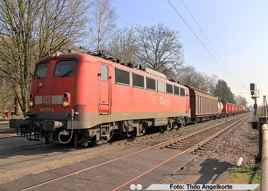 | 140 070 am 29.März 2011 am Bahnübergang "Anrufschranke" | ||