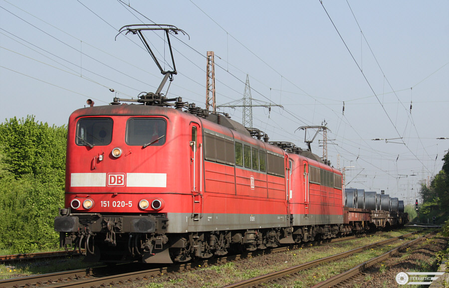 140 572 mit Leerwagenzug (Coil) Fahrtrichtung Duisburg im westlichen Ausweichgleis (ab Rath im Gleis der Gegenrichtung ) 151 020 und 151 006 (>>Klick andere, grössere Aufnahme) Zug beladen mit Coil Fahrtrichtung Düsseldorf. Fahrt Doppeltraktion WLB-Loks im Gleis der Gegenrichtung >>KLICK