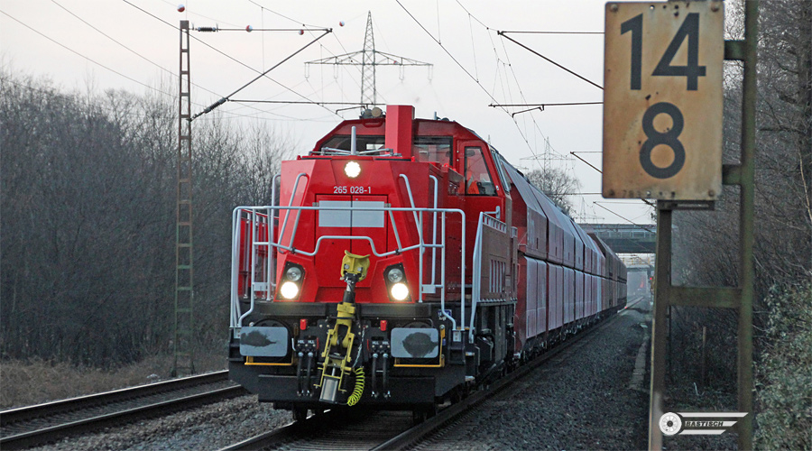 | 12. Februar 2016 - 265 029 mit Kalk für HKM durch Lintorf | |