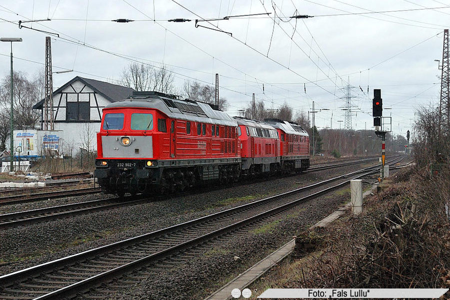 | 26.02.2010 - Lokzug mit 232 902 und 225 006 und 232 379 gegen 10:45 Uhr durch Lintorf | ||