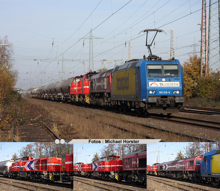 | 19.11.2011- 185 518 mit HGK DE 62 und HGK DH 712 und DH 714 | ||
