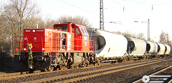 Mietlok NIAG 31 (Vossloh 1001320) auf dem Weg nach Duisburg kurz vor Lintorf 14.03.2003 |