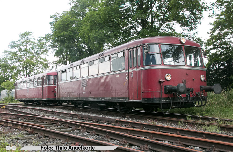 | 18.Juni 2016 Triebfahrzeug: 796 690 und 796 802 Geplant war folgende Sonderfahrt :Hagen Hbf (Zustieg) Gevelsberg West W-Oberbarmen Wuppertal Hbf (Zustieg) D-Gerresheim Abzw Rethel D-Derendorf Dnf D- Reisholz Rgf Benrath tief D-Reisholz Rn D-Derendorf Dnf Abzw Rethel Abzw Fortuna Abzw Hardt D-Rath Anschlussbahnbahn Vallourec (Genehmigung der Werksleitung liegt vor) D-Rath Ratingen West Anschlussbahn Preymesser (Genehmigung liegt vor) Ratingen West D-Rath D-Eller Hilden (Umsetzen von Gleis 4 nach Gleis 1) Solingen Hbf Monhofer Feld (eventuell wenn dies möglich ist) Gruiten Gz-Gleis W-Vohwinkel Wuppertal Hbf W-Oberbarmen W-Langerfeld Hagen Hbf |
