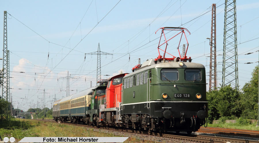 | 25.Juli 2013 - E 40 128 überführt (die zukünftigen Museumslokomotiven ?) 290 001 und 001 der RBH nach Koblenz | ||