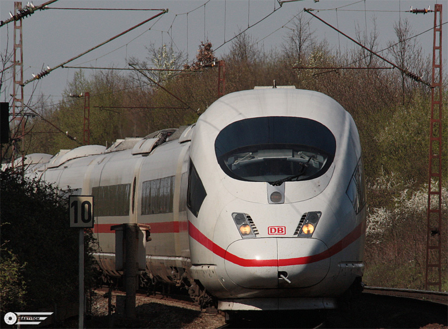 ICE "Münster" vor dem Bahnübergang Sandstrasse