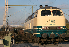 | 272 006 und als Wagenlok 215 085 mit Aluzug zwischen Ratingen West und Düsseldorf-Rath | |