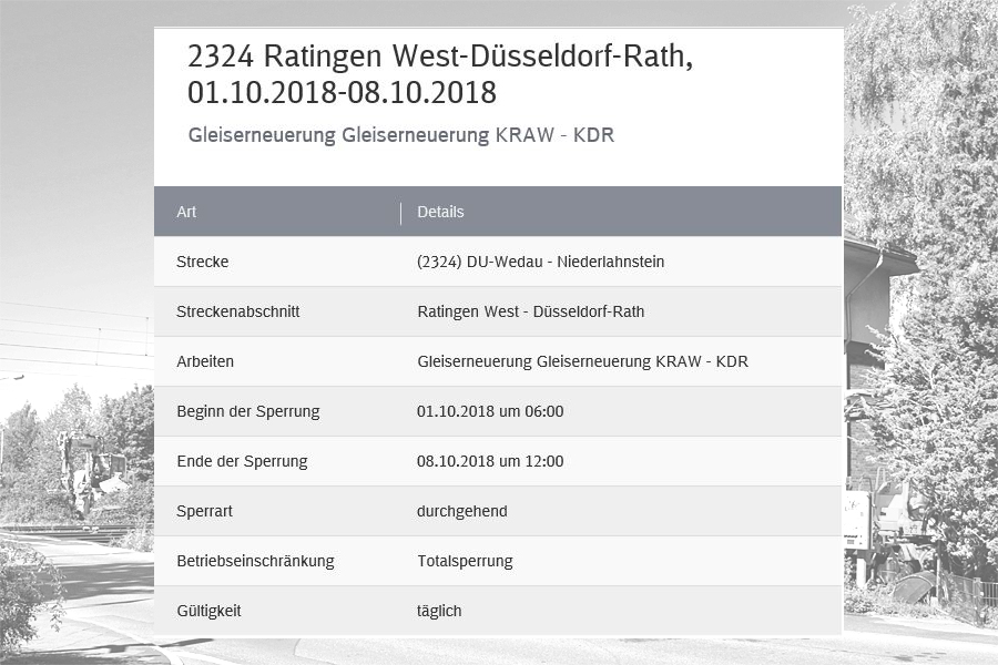 Gleisbauarbeiten zwischen Ratingen West und Düsseldorf-Rath
