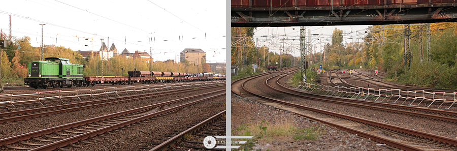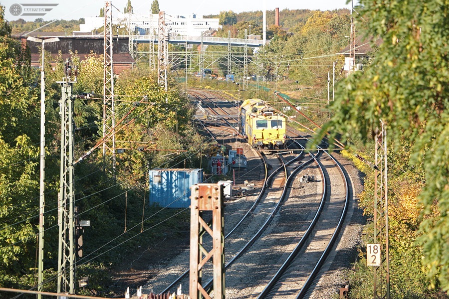 | Blick auf eine Stopfmaschine von der Brücke der Volkardeyer Strasse | |