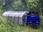 Fragezeichen: Am 26.August 2016 fährt Lok 403 der Dortmunder Eisenbahn mit Leerwagen nach Rohdenhaus. Wieso, weshalb, warum ? KLICK mehr dazu | ||||