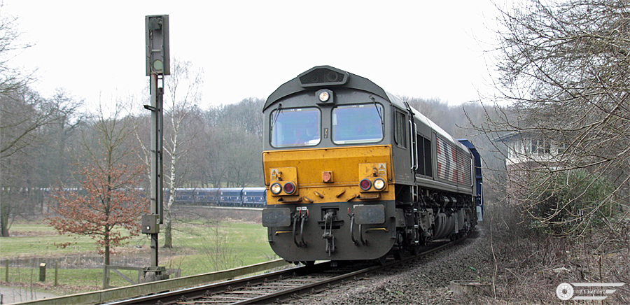 12.03.2011 - 16:26 Uhr - Die beiden Miet-G1206 der TX Logistik kurz vor der Brücke des Blyth-Valley-Rings über die Kalkbahn